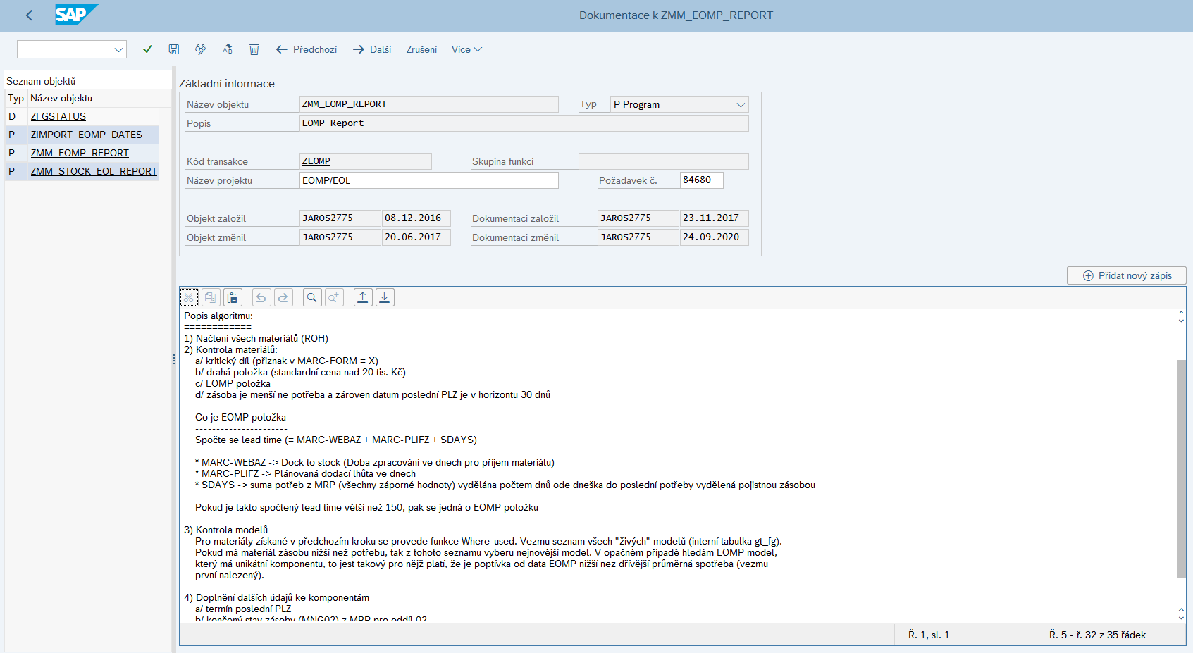 Transakce, která se mezi mými kolegy ze SAP týmu velice osvědčila, je ZDOCU neboli dokumentace plně integrovaná do prostředí SAPu (pomocí tlačítka ve standardních transakcích SE37, SE38 a SE80). O její popularitě svědčí už fakt, že aktuálně v ní evidujeme okolo 500 programů a jejich počet každým dnem narůstá.